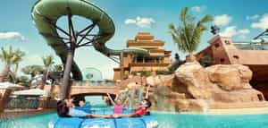 Dubai Travel Tourism provides you best packages to enjoy the premiere Aquaventure Water Park in the Middle East. It is located within Atlantis and features a wide array of rides and other attractions. We take care of our guests’ thirst for adventure and let them experience thrilling water slides. First and foremost, there is Tower of Neptune which is the most famous ride in Aquaventure Water Park. First, you’ll climb Maya pyramid, then fall through the 60 feet tunnel in a lagoon filled with sharks. In addition to that, it has the world’s largest slide tube and longest zip-line circuit suspended 20 meters above.. We even make sure that you can swim with the lagoon sharks if you are brave enough. Above all that, we have also arranged a six-person raft adventure for you among the palm trees present with 11 swimming pools. In the meantime, your kids can enjoy the play area on Splasher Island. Moreover, there are700 meters of private beach to enjoy. You can also experience a mile-long lazy river ride while floating in a tube. We make sure that your trip at Aquaventure Water Park is full of enjoyment and with full convenience. Our package allows you to visit this wonderful place at a great price