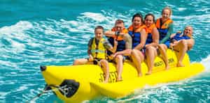 Banana boats have the capacity to accommodate up to 6 people, and it is considered to be a fun water sports activity, which keeps you sound and healthy.