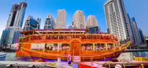 Our Dhow Cruise Dubai Marina tour begins with picking you up from your hotel or also from Dubai Marina hotels. When you reach the Dubai Marina near yacht Dubai Marina club, you will see breathtaking views of the marina. We will board you to the traditional vessel used to cruise down the routes of eastern Arabia. Then, you will have a lifetime experience on the cruise while enjoying the beautiful sea and coastline views.