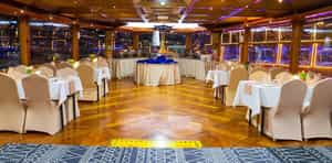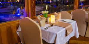 Take part in an award-winning dinner cruise with your family and friends. Dubai Travel Tourism has created and serves an international buffet. You will be assigned private allocated seating for your group, either on the open-air upper deck or in the lower restaurant area, depending on your preference (please specify your preference when booking and it may be pre-selected based on availability). As the cruise glides through the night lights of Dubai, enjoy fresh juice and relax to live acoustic music from the in-house musician. Soon after departure, the buffet will open, where you will feast on international cuisine, including a salad bar with local inspiration and a mix of international with 1 live cooking station and an array of sweets to tickle anyone's fancy.