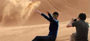 Dune bashing means driving at increasing and decreasing speeds over sand dunes.