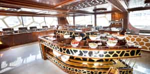 Cruise through the bustling center of Dubai and the stunning Dubai Marina while taking in breathtaking entertainment options, unexpected giveaways, and delectable foreign food options. Your New Year's party cruise will be even more enjoyable with special New Year's delights like delicious cake and bubbly served at midnight.
