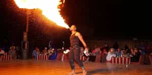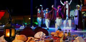 One of the most interesting parts of our trip is fine dining at Bab al-Shams Al Hadeerah Resort, a beautiful example of Arabian culture and luxury. It's in a great spot in the desert safari scenery, surrounded by red dunes, and it offers a VIP 5-star buffet dinner to its most esteemed guests. You can choose from many Arabic and foreign dishes made with unique ingredients by skilled chefs. At our gourmet buffet, there is something for everyone to enjoy, from juicy BBQ meals to tasty desserts and foods that look good. As you enjoy a delicious dinner buffet under a sky full of stars, our performers will perform live, including traditional belly dance and Tanura dance, which is both captivating and beautiful.