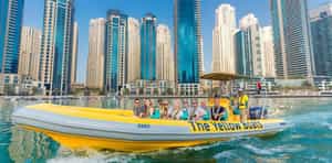 You can head out to begin your journey from the Dubai Marina which is a 60-minute boat ride- the glorious Dubai skyline will reveal itself to you like you are living up to a fantasy. The incredible architectural map of the city and the metropolitan site decked out in all its showy. If you want to enhance your trip more than taking a ride during the night will just make you feel magical and awe-struck when the city glows and shine multi-colored in middle of the night –this is without a doubt most mesmerizing view you will ever experience. It doesn’t end here- You can extend it to 90-minute yellow ride as well from Dubai marina head to Palm Jumeirah .the most stunning sight to experience await you- the Burj-al-Arab ear-rending the Dubai sky is a spectacular view to gaze upon. And you cannot take your eyes off from the sight of Atlantis which is just enhancing the beauty of palm Jumeirah.isnt all this just sound incredibly astonishing? So don’t miss this opportunity and check out the exclusive deals we got just for you! This yellow boat ride is a unique way to experience the true essence of Dubai- whether you choose to ride boat under the blanket of stars or under a full blare of the sun- the experience will leave you fascinated. Your trip to Dubai is incomplete without riding a yellow boat over the deep extensive water of the gulf. And there are rides available according to each one's preference and for different age groups. This is just a perfect place for family entertainment or some couple time- to corporate socializing for a good break from your hectic schedule!